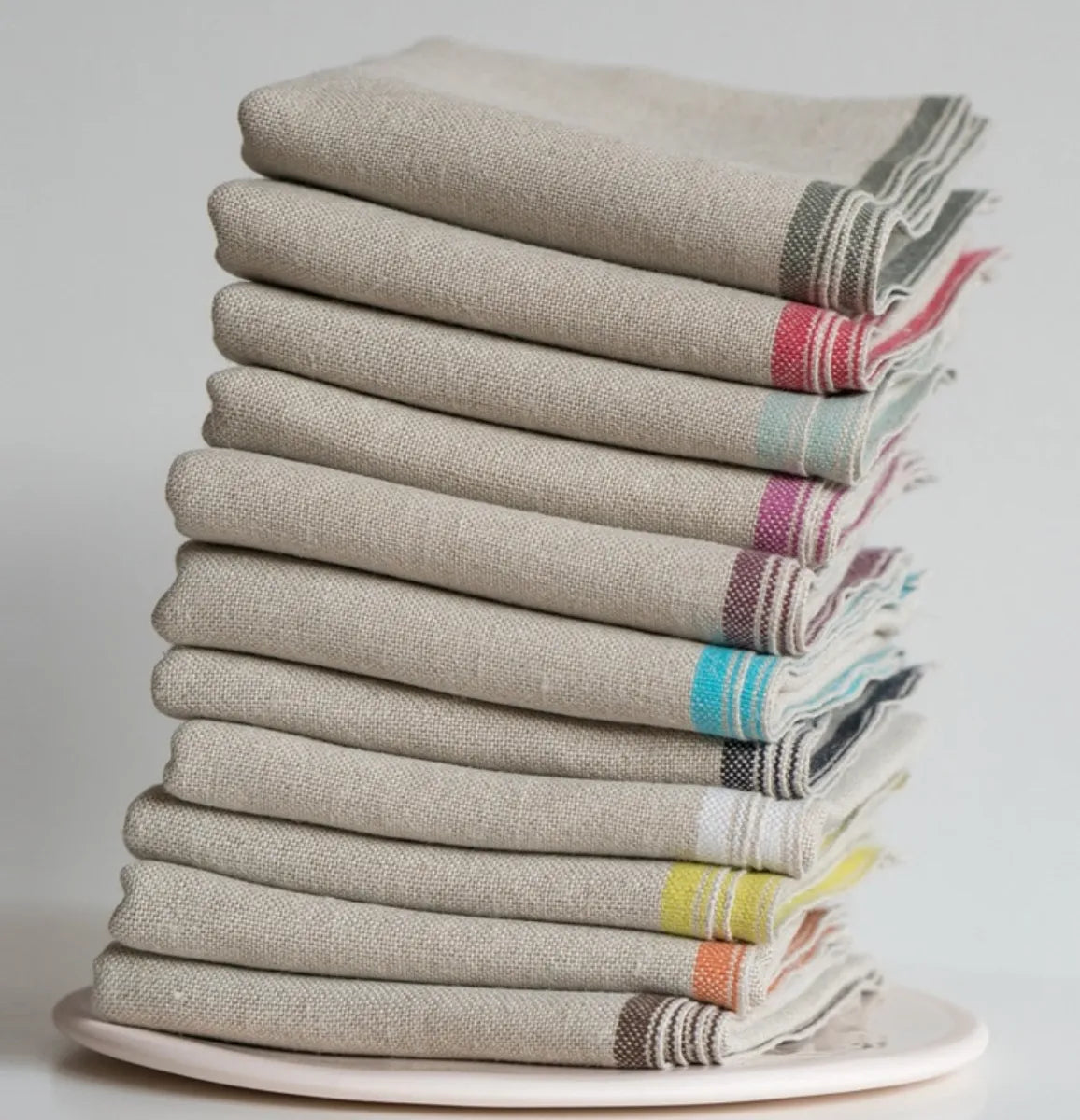 The idea for The Selvedge Serviette was born from a family holiday, where laundry wasn't a priority, and napkins were reused for several evenings. By assigning each family member a unique color, we eliminated cross-contamination and confusion over whose napkin was whose. We think that's pretty neat!