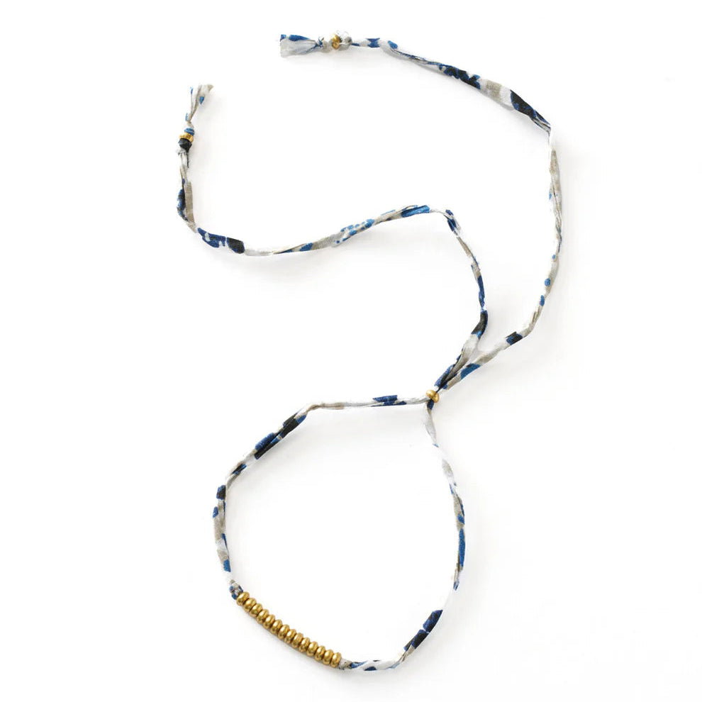 Add a pop of color and effortless boho charm with the Priya Thread Bracelet. Each one is a unique surprise, made from upcycled textiles with a string of glass beads and an adjustable slider for the perfect fit—wear it alone or stacked for a playful everyday look.