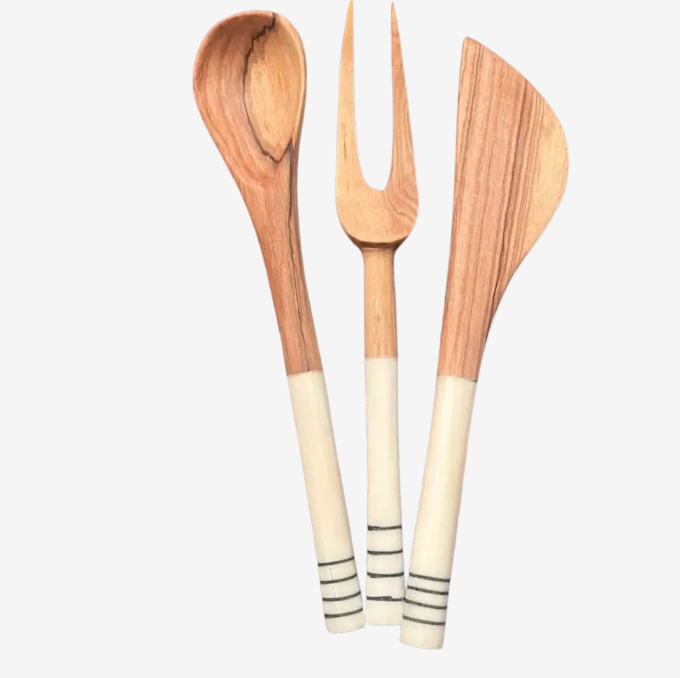 Elevate your kitchen and dining experience with this ethically sourced, hand-carved utensil set from Kenya. Each piece is crafted with care by skilled artisans using sustainably harvested wood and ethically sourced animal bones that would have otherwise been discarded. No two are alike, making every set truly one of a kind.