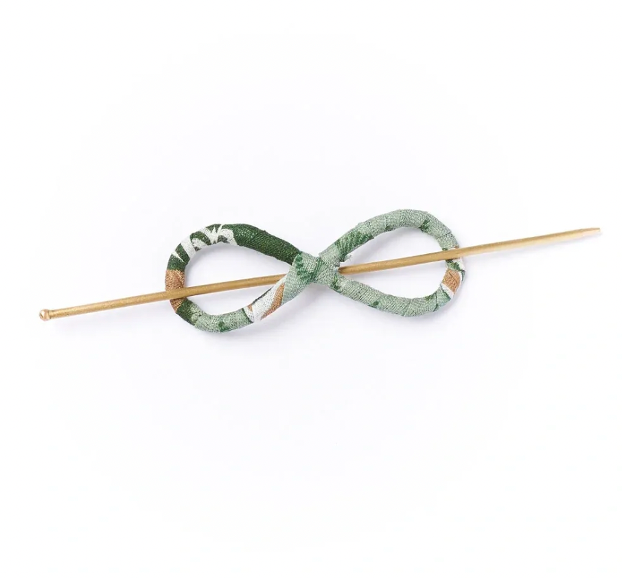 This versatile hair accessory, covered in upcycled sari fabrics, is perfect for creating effortless boho hairstyles, buns, updos, or half-updos. The infinity symbol represents boundless potential, making it an ideal gift to express limitless life, friendship, or love.