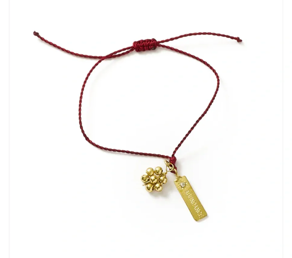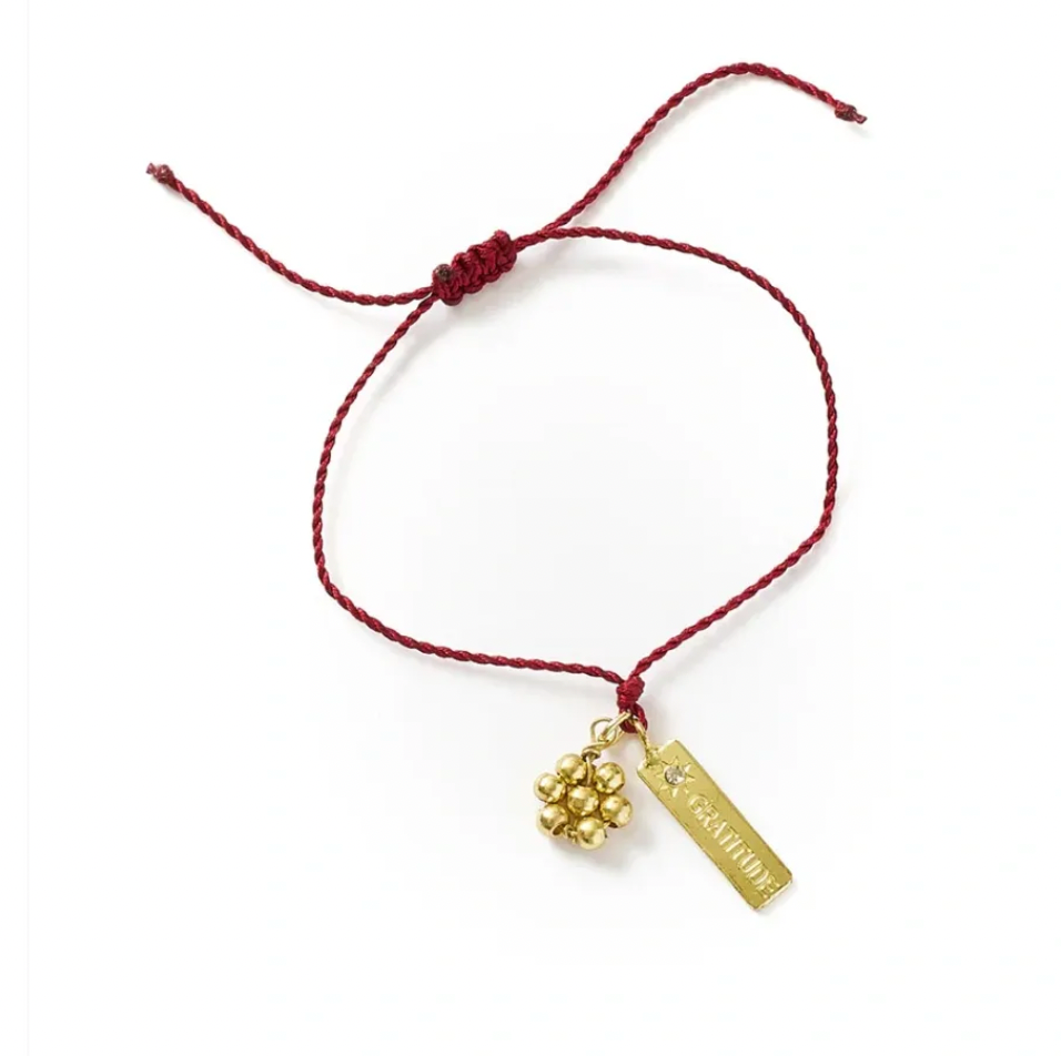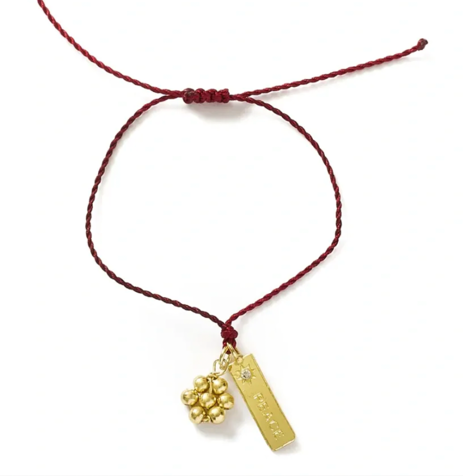The Intention Bracelets –are thoughtfully crafted with a hand-beaded flower and a brass charm engraved with the intention word, accented by a delicate CZ stone. The vibrant red cord, a color rich with cultural significance across many traditions, is adjustable with a pull-tie, ensuring a comfortable fit for all wrist sizes.