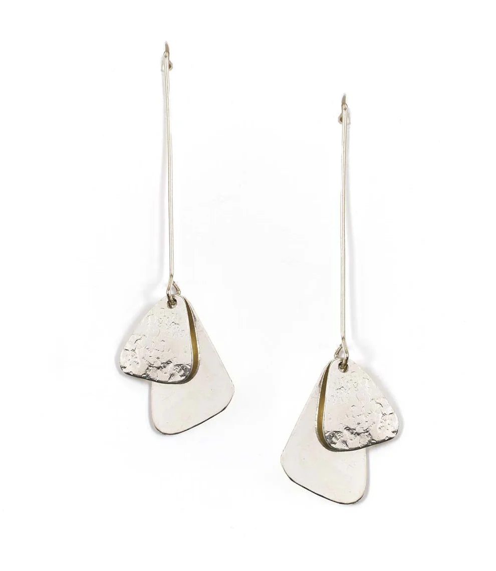 The Iyla Geometric Threader Earrings feature a silver-tone finishwith long hooks and softly curved geometric shapes. A mix of smooth and hammered textures adds subtle dimension, while the threader style brings movement and a modern feel.