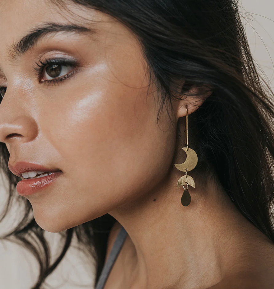Rajani Moon Phase Gold Drop Earrings